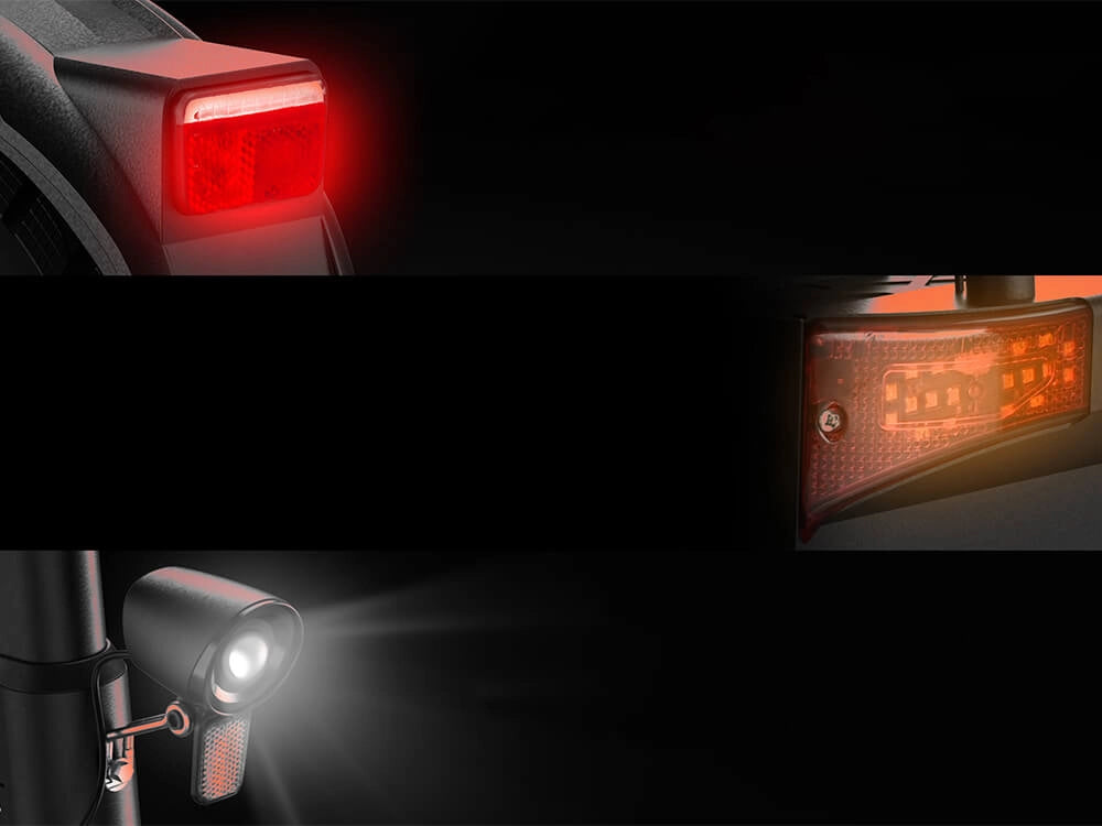 The T10 features a brake tail light, turn signals, and a bright headlight, ensuring clear visibility in all conditions. This integrated lighting system enhances safety, alerts others on the road, and lets you ride confidently day or night.