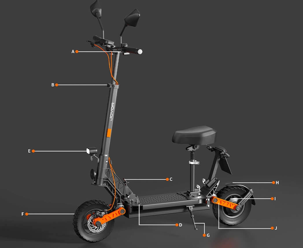 Erkunden Sie die wichtigsten Komponenten des Scooters