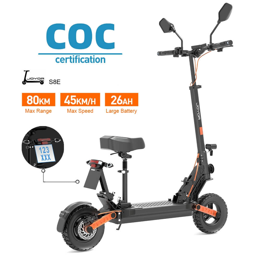 JOYOR S8E ist in Europa EEC-zertifiziert und damit vollständig konform und sicher für den täglichen Gebrauch. Für Pendler entwickelt, bietet es stabile, langlebige Leistung mit zuverlässigem Handling und einer dauerhaft robusten Bauweise – perfekt, um selbstbewusst durch die Stadt zu fahren.