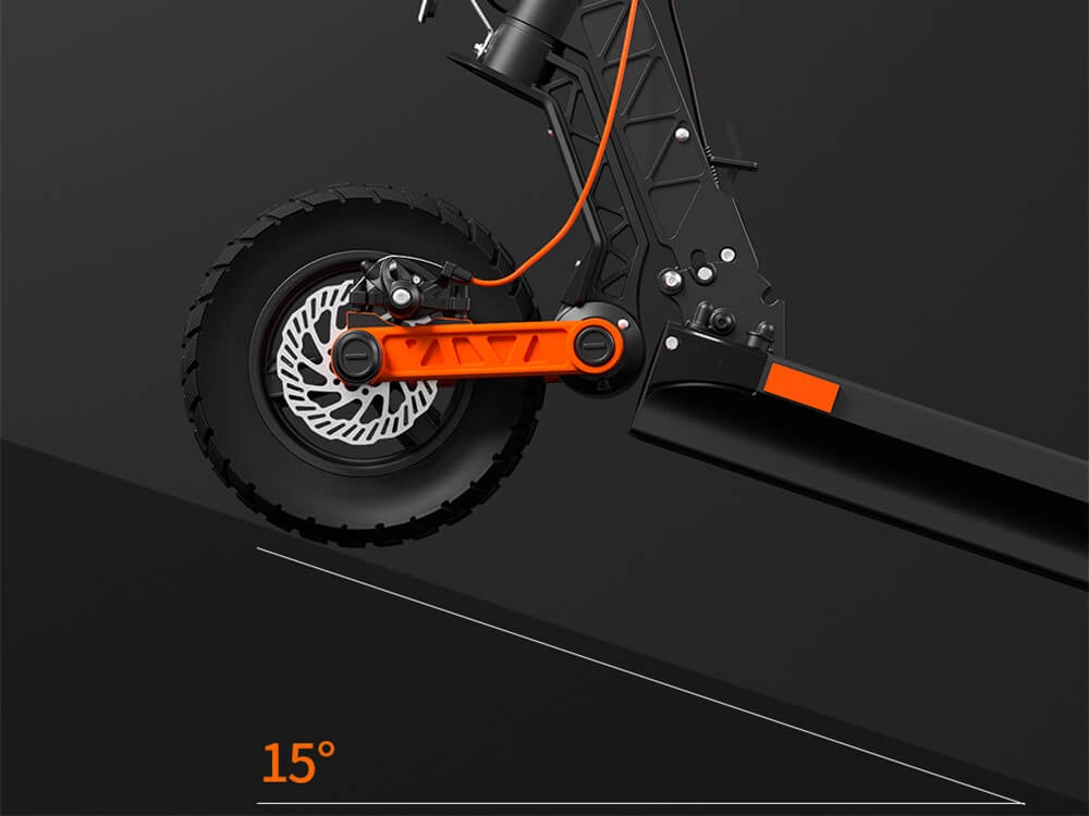 Equipado con frenos de disco dobles frontales y traseros, el sistema ofrece un frenado rápido y eficiente con un esfuerzo mínimo, garantizando detenciones suaves, fiables y seguras en todo momento.